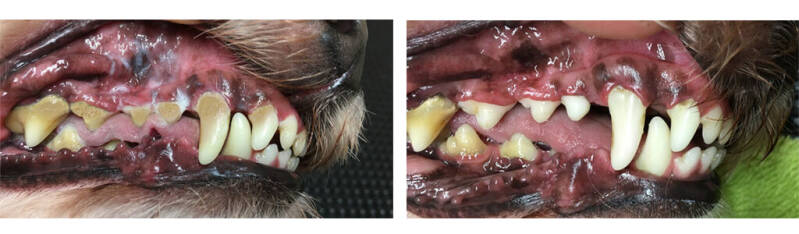 Mijn advies aan alle hondenbezitters: laat eerst de tanden van uw hond herstellen door uw dierenarts. Zo worden alle probleemgebieden vakkundig geëlimineerd, dan is uw hond pijnloos en staat het gebruik van emmi®-pet, na een gepaste periode, niets in de weg.