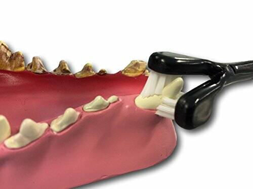 Het belangrijkste product in Petosans Pet Dental Care-lijn is de dubbelzijdige tandenborstel, ontworpen door een team van tandartsen en dierenartsen. De dubbelzijdige Petosan-tandenborstel is schuin naar de tanden en het tandvlees gericht voor een optimale verwijdering van tandplak. De Petosan Tandenborstel dubbelzijdig is een speciaal ontwikkelde tandenborstel waarbij de binnen - en buitenkant van de tanden en kiezen in één keer gereinigd worden. Dit verkort het poetsen voordat de meeste honden er genoeg van krijgen. Hoe goed de borstel ook is, voor het verbeteren van de mondgezondheid van uw hond moet u consequent gedrag vertonen en zoveel mogelijk dagelijks gebitsverzorging bieden. Uw hond heeft ook tijd nodig om te wennen aan een nieuw regime om zijn tanden te laten reinigen.