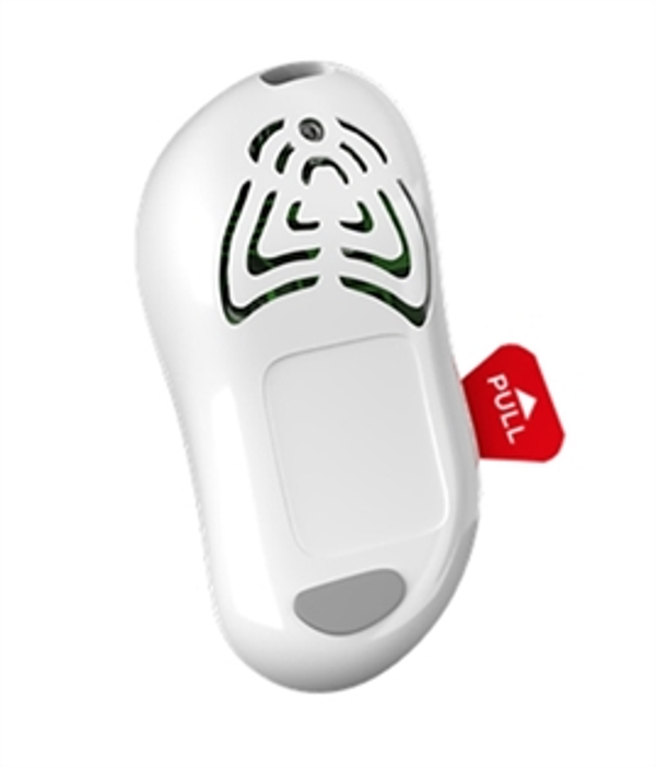 Gebruik: Trek het lipje uit om de lithiumbatterij te activeren (niet vervangbaar). Vier flitsen geven aan dat het apparaat is ingeschakeld. Na activering is de levensduur van de batterij ongeveer een jaar. U kunt de werking op elk gewenst moment controleren door één keer op de knop te drukken en te kijken naar het knipperende LED-lampje. De elektromagnetische compatibiliteit en ultrasone emissie zijn in overeenstemming met de vereisten van de EU.